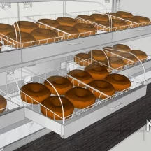 When Dave Carpenter approached us, little did we know the rollercoaster we were in for. We helped develop key features inside including a very custom bakery case, an ambient / heated display, and specialty beverage island. Below are some of the last interior renderings, details, and some interior shots courtesy of Visualanties (local photographer hired by Hussmann).