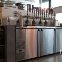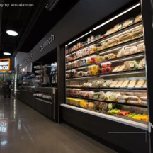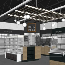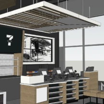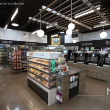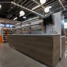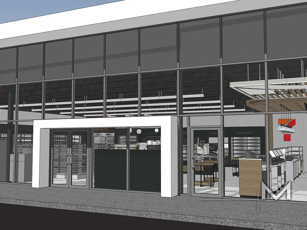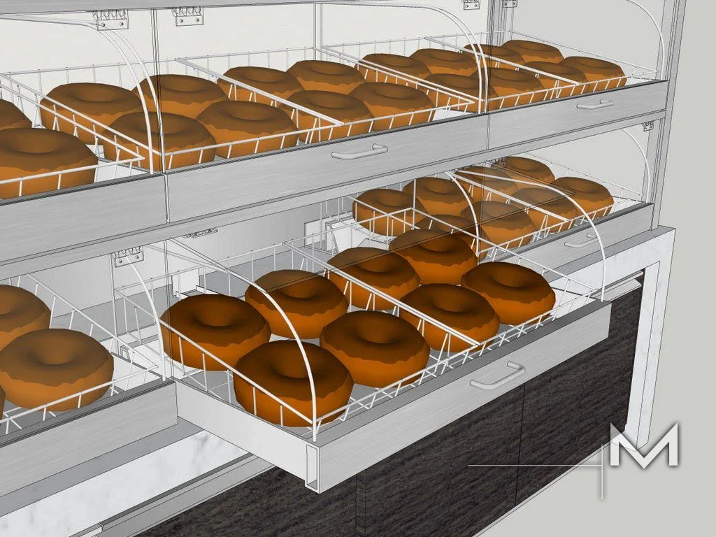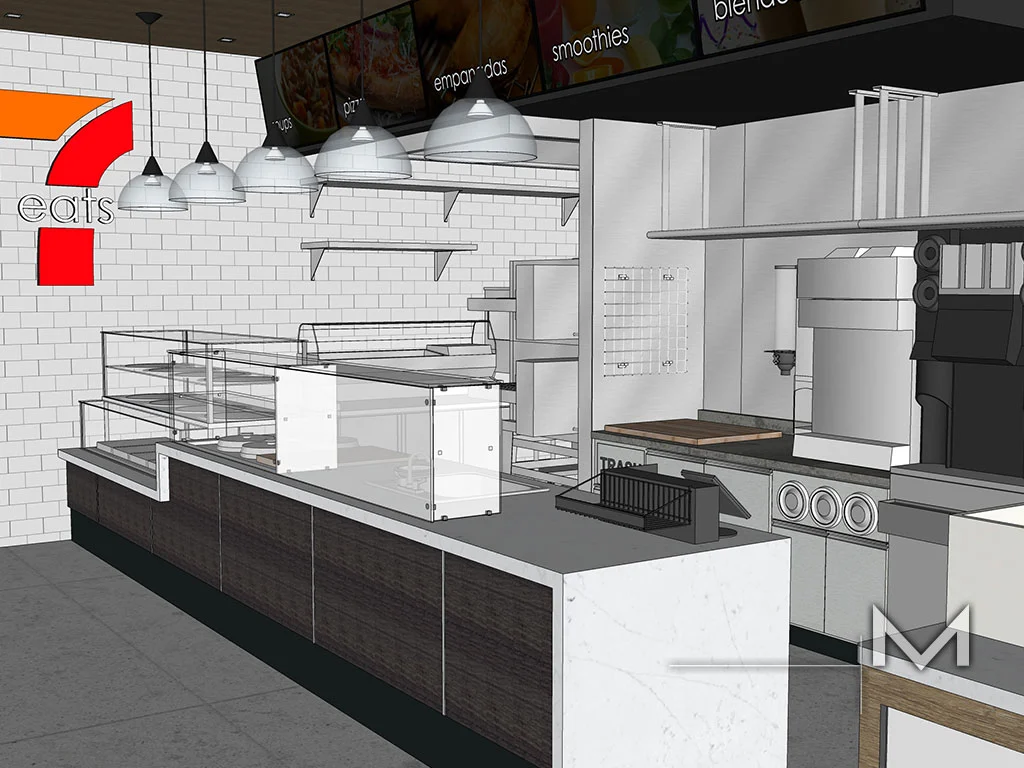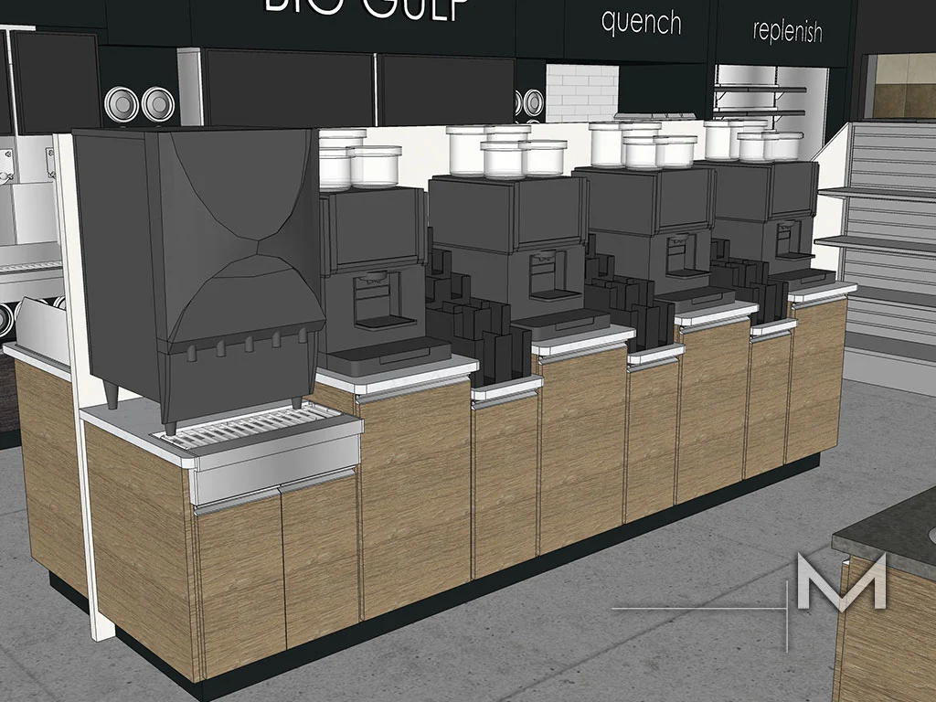 When Dave Carpenter approached us, little did we know the rollercoaster we were in for. We helped develop key features inside including a very custom bakery case, an ambient / heated display, and specialty beverage island. Below are some of the last interior renderings, details, and some interior shots courtesy of Visualanties (local photographer hired by Hussmann).
